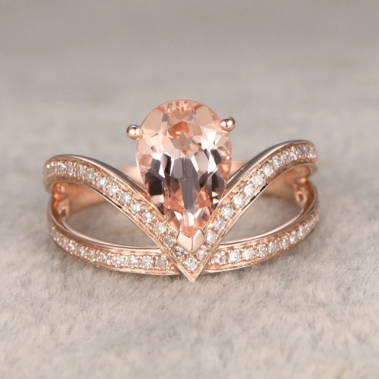 The first wedding band features a row of round diamonds (measuring. Whether you're looking for an elegant, classic design or an. Women rose gold floral rings set morganite anniversary proposal gift clear jewelry birthday party engagement wedding. Pear morganite and diamond engagement ring in 18k rose gold. The pear diamond resembles a tear drop because it is pointed at one ended and rounded on the other.