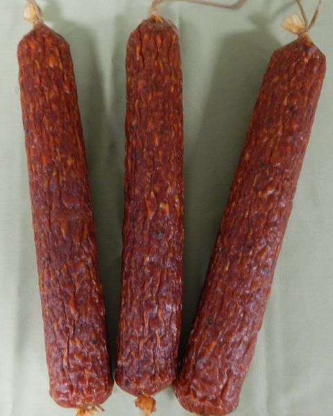 Each is produced differently, lending contrasting characteristics. It is seasoned with garlic, salt. Rich in flavor and a hint of garlic. Hard salami is drier in texture. The original genoese sausage is the salame genovese di sant'olcese, which is a prodotto agroalimentare tradizionale (traditional agricultural food product), and originates in the hilly interior of its province where pigs could be easily maintained on acorns, chestnuts.