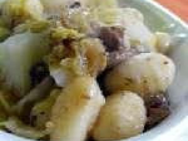 Canederli Allo Speck In Brodo: 300 g di pane bianco raffermo 100 g di speck mezza cipolla tritata finemente una noce di burro due uova 2 bicchieri di latte 2 cucchiai di farina 2 cucchiai di prezzemolo tritato sale, erba cipollina un litro e un quarto di brodo di carne.